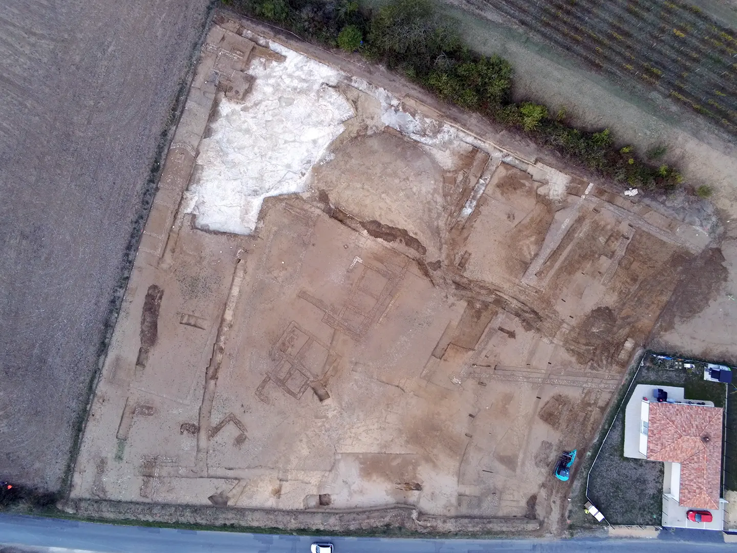 Le diagnostic avait en effet mis en évidence plusieurs vestiges antiques parmi lesquels une série de maçonneries, plusieurs structures fossoyées dont une possible fosse d’extraction. La proximité d’un enclos fossoyé possiblement protohistorique dans la parcelle voisine, directement au sud, laissait supposer la présence éventuelle de niveaux antérieurs.