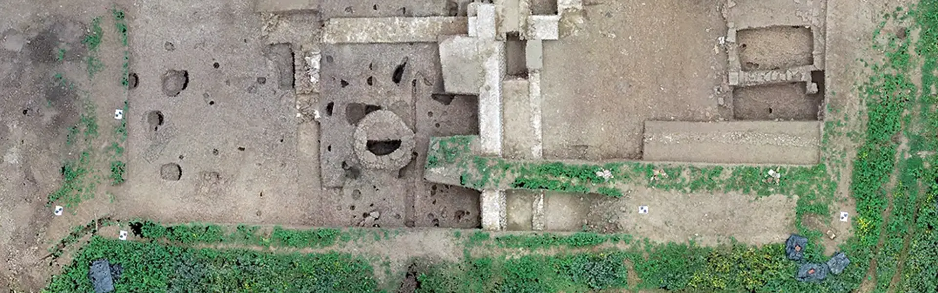 L’ouverture d’une fenêtre de 623 m² devait permettre de conclure les investigations initiées en 2016-2017 par Cécile Doulan dans ce secteur du lieu de culte marqué par une exèdre interprétée comme une possible entrée donnant sur une voie majeure de l’agglomération antique de Cassinomagus. Les objectifs principaux de la campagne étaient ainsi de déterminer l’ampleur et la fonction de l’aménagement ponctuant la façade méridionale du sanctuaire, dégager intégralement la voie longeant le mur de péribole et documenter les occupations antérieures ponctuellement observées en plusieurs points du site cultuel. Caractérisées par de nombreuses structures fossoyées associées à des niveaux de terres noires, elles se révèlent généralement difficiles à analyser au vu de l’étroitesse des fenêtres d’observation habituellement ouvertes.